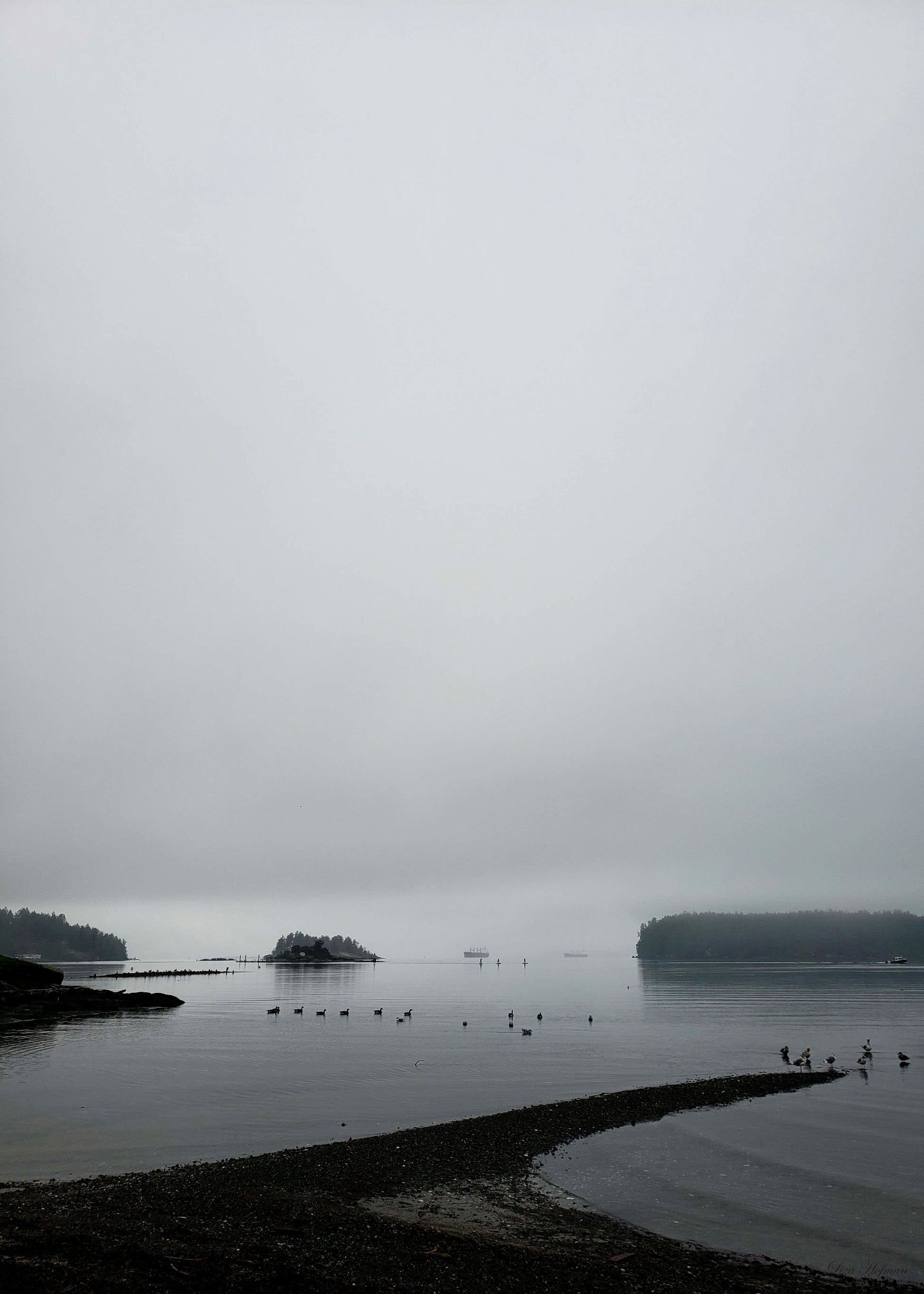 This was an absolutely beautiful grey January day in Departure Bay, Nanaimo, BC. The water was so still, a few paddleboards in the distance. A grey, but warm west coast day. .